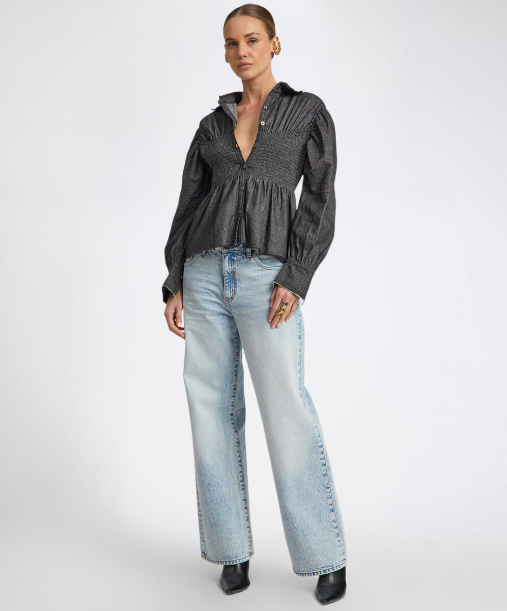 Love Machines Heart Mid Waist Super Wide Leg Denim - Sea Mist Love