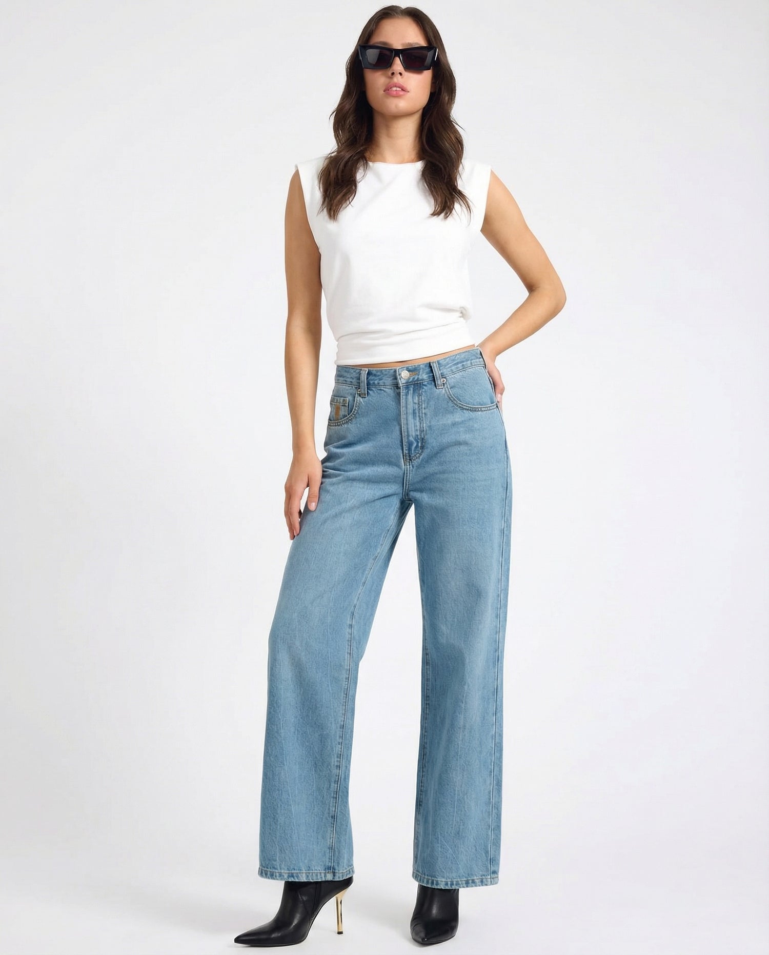 Baxters Mid Waist Wide Leg Denim Jeans - Hendrixe Blue