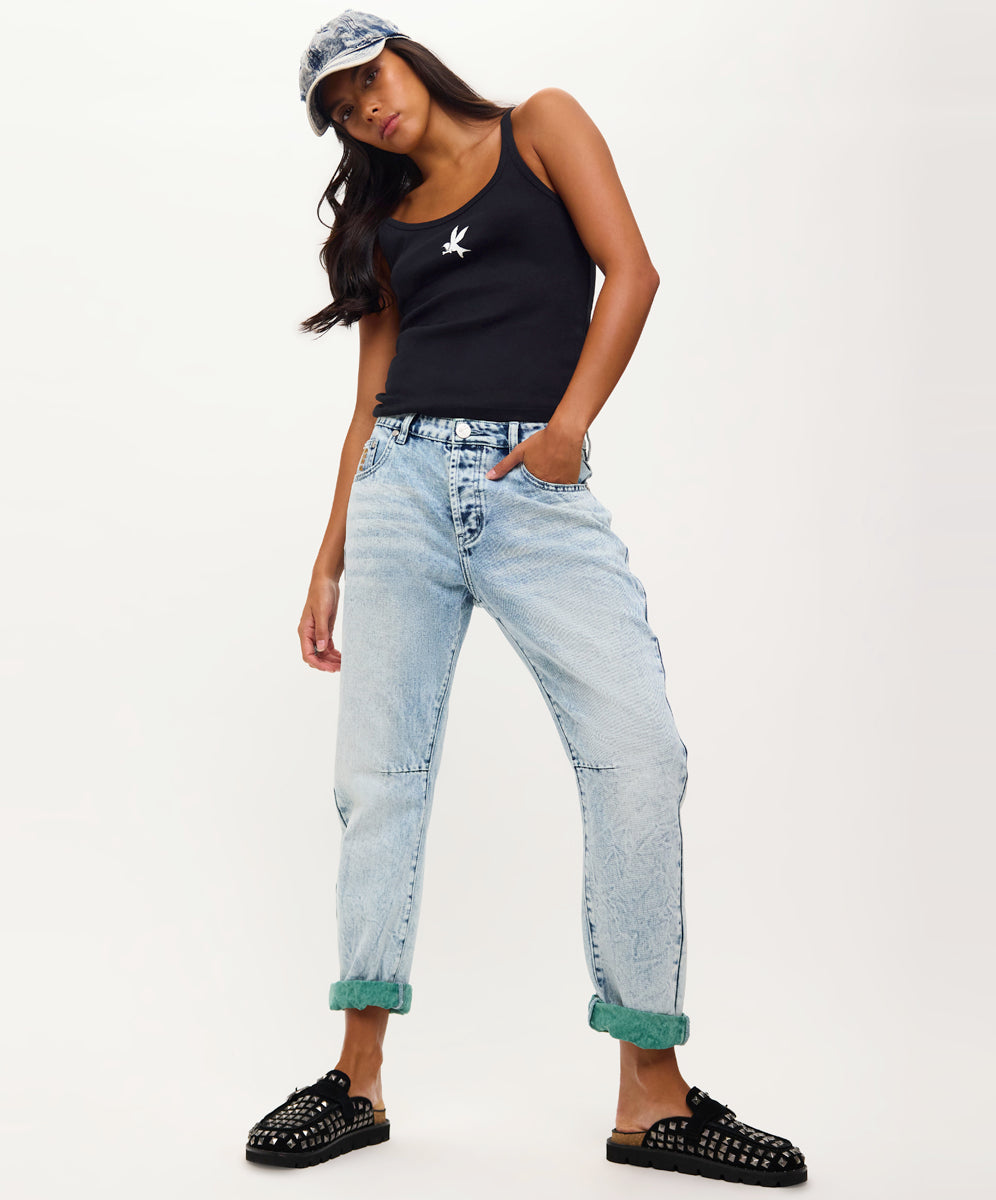Saints Low Waist Boyfriend Denim Jeans - Blue Fields