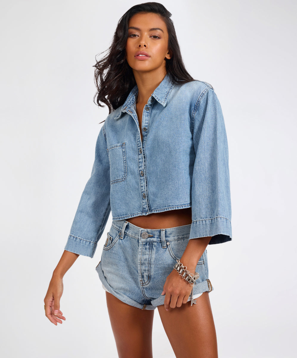 Frankies High Waist Long Length Denim Shorts - Blue Love