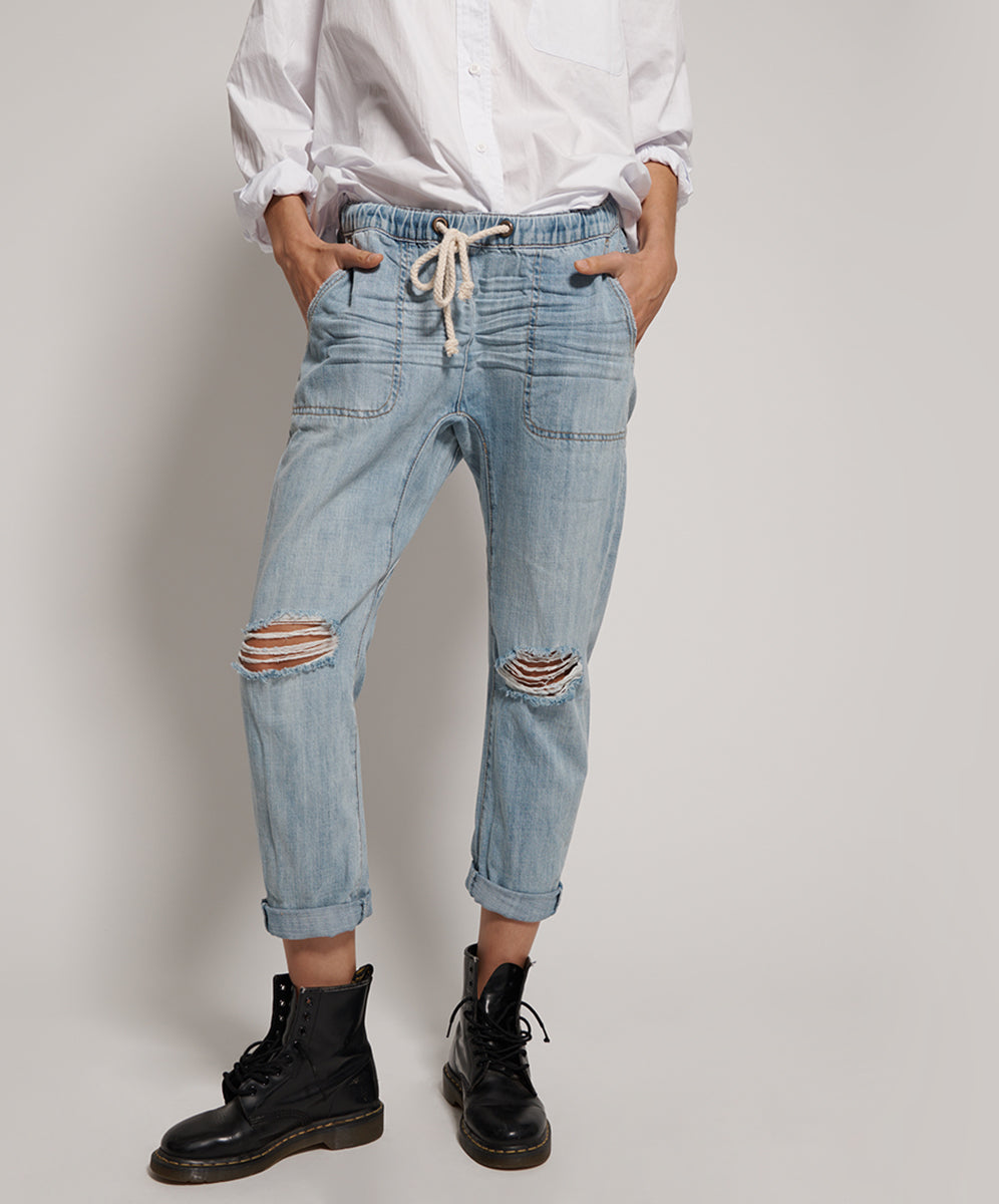 Shabbies Drawstring Boyfriend Jean - Hustler Blue