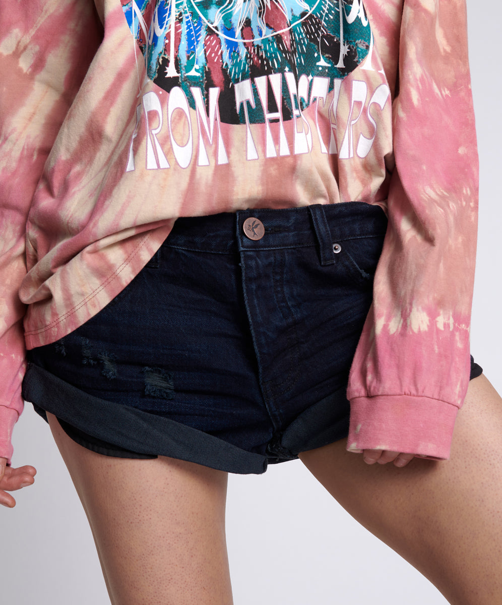 Bandits Low Waist Studded Denim Shorts - Hendrixe Blue
