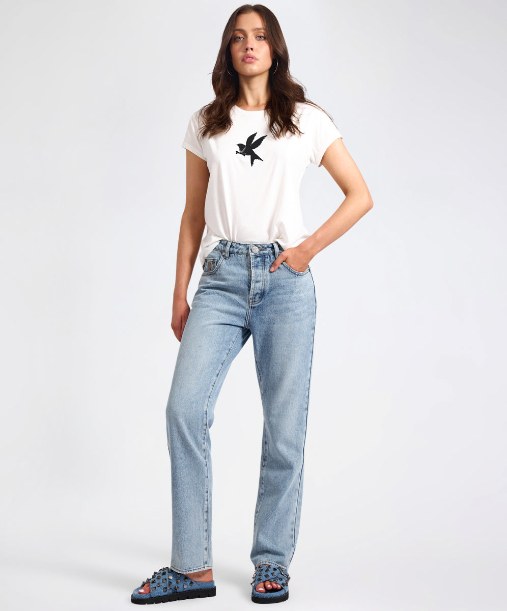 Austins Mid Waist Relaxed Straight Leg Jeans - Misty Blue