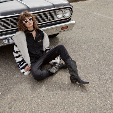 “A true collector’s piece. It captures 25 years of craft, attitude, and evolution. Our classic trucker reimagined through a One Teaspoon lens. You can feel the craftsmanship in every stitch. I love the restraint of this jacket, the studs are minimal, but the placement is strong. It feels elevated, effortless, and tough in a beautifully refined way.”