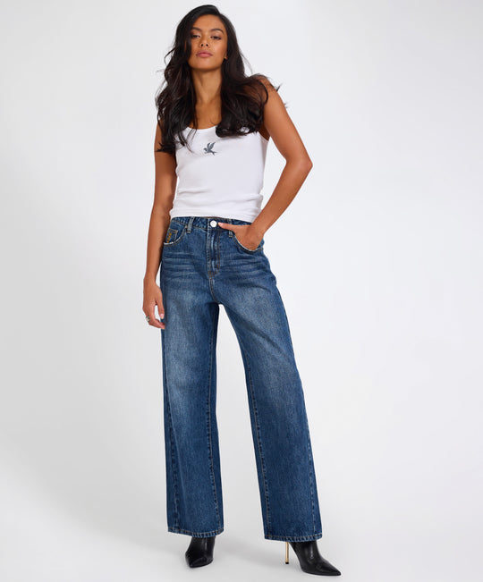 Baxters Mid Waist Wide Leg Denim Jeans - Blue Love