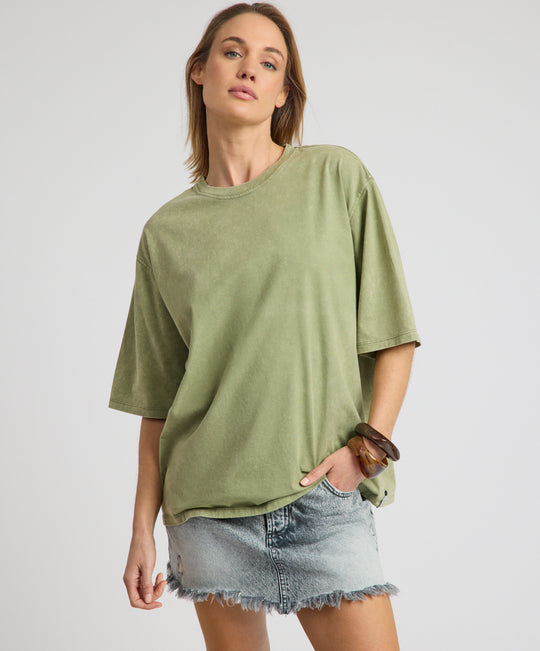 KHAKI is a versatile, earthy green tone that adds a cool, understated edge to this essential tee.