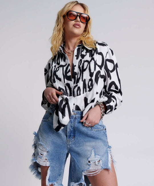Frankies Low Waist Long Length Denim Shorts - Misty Blue